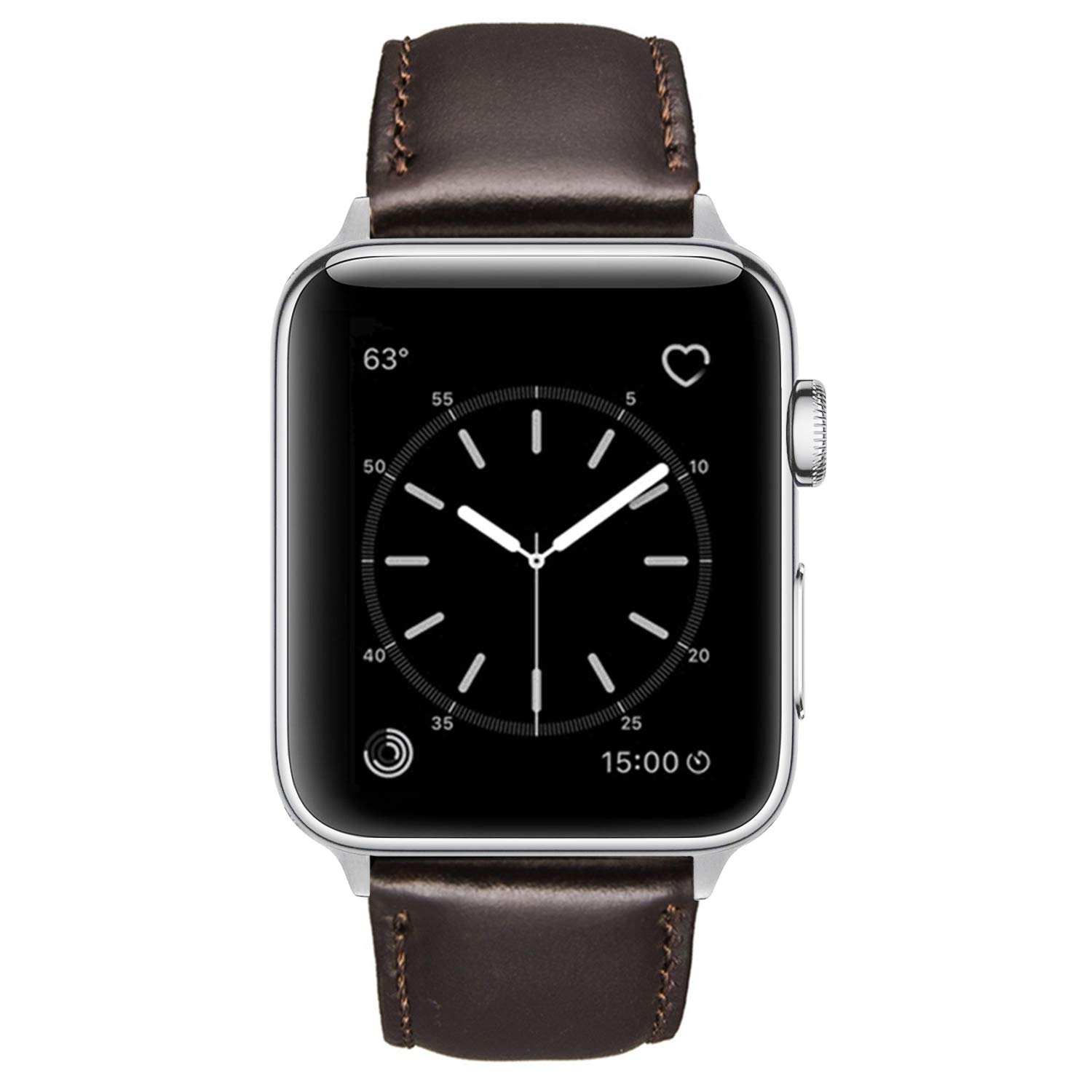 Speidel 38/40/41 and 42/44/45mm Genuine Luxury Black OR Brown Leather Band with Stainless Steel Adapters and Buckle Compatible for use with The Apple Watch.