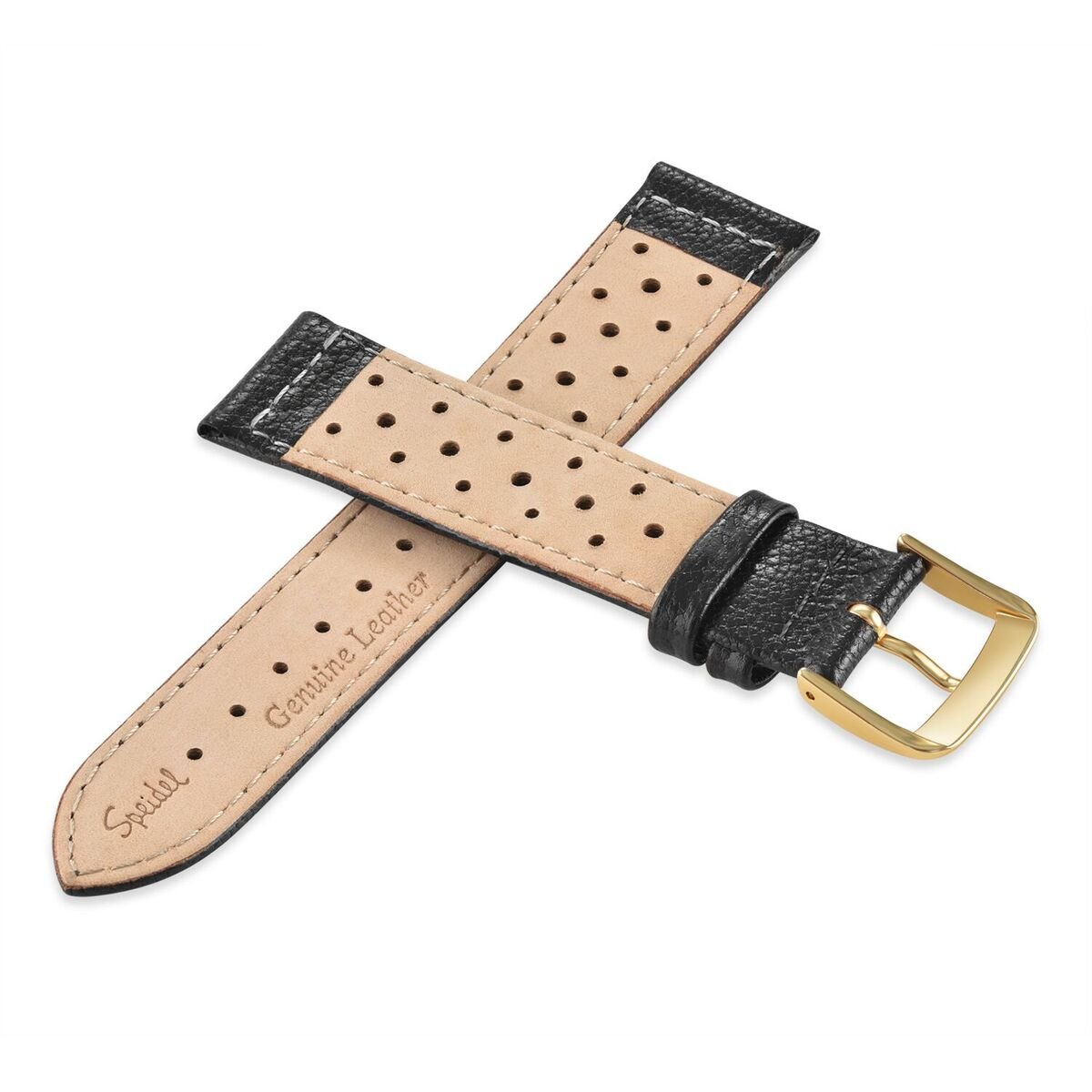 Speidel Genuine Leather Soft Calf Driving Watch Band 18mm in Black Glove Leather Replacement Strap, Stainless Steel Metal Buckle Clasp, Watchband Fits Most Watch Brands