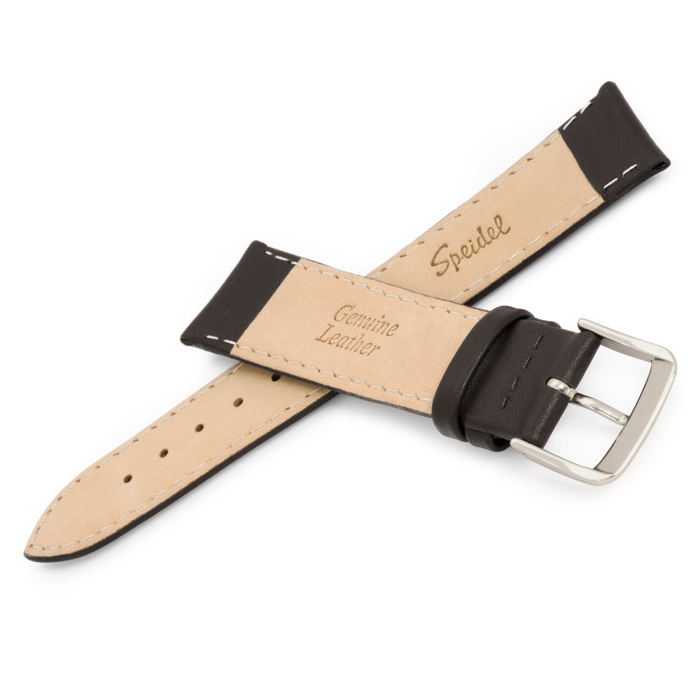 Speidel Genuine Leather Watch Band Black and Brown Stitched Calf Skin Replacement Strap,Stainless Steel Metal Buckle,Watchband Fits Most Watch Brands (16mm-24mm)