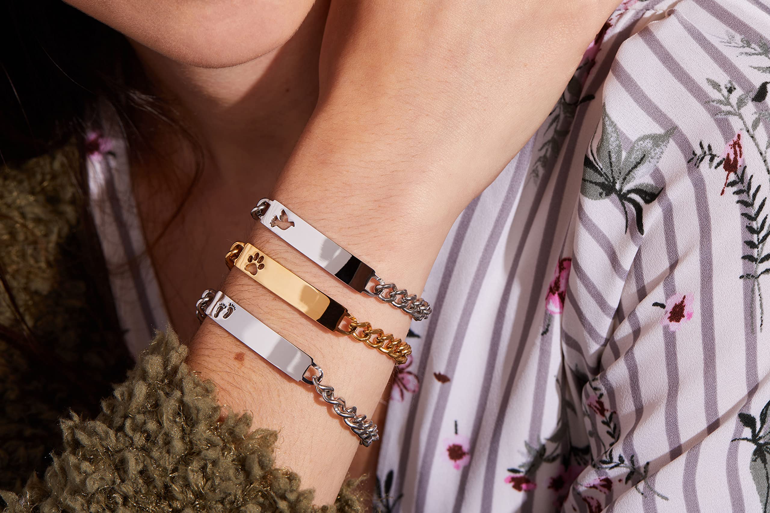 - Personalize: This ID bracelet can be engraved and fully customized with a name or special message for that someone special.